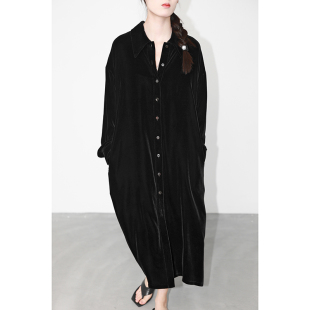 连衣裙 宽松长裙落肩长袖 JUZININE原创设计真丝绒衬衫 裙桑蚕丝长款