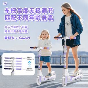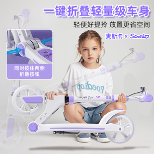 儿童滑板车6一12岁库洛米女生初学者青少年新款 四轮闪光双翘滑板