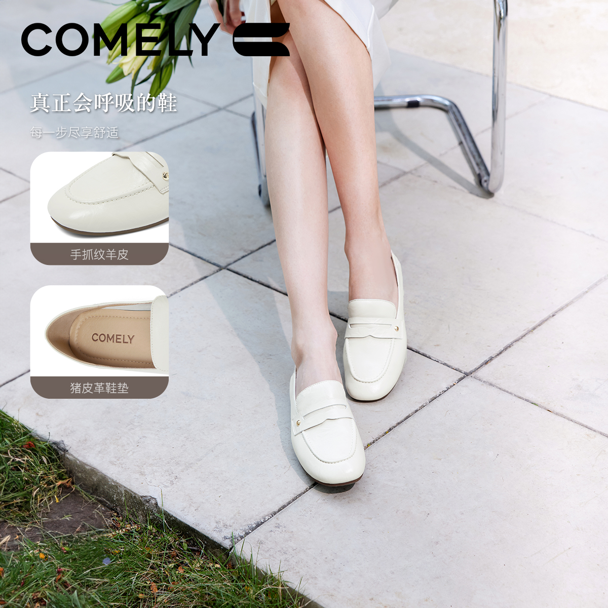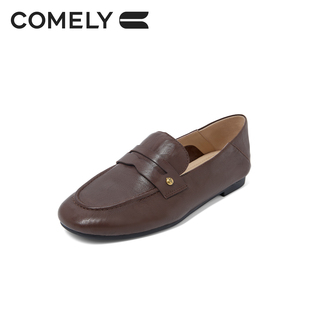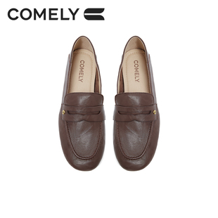 平底小皮鞋 新款 女真皮羊皮简约复古圆头2025年春季 康莉低跟乐福鞋