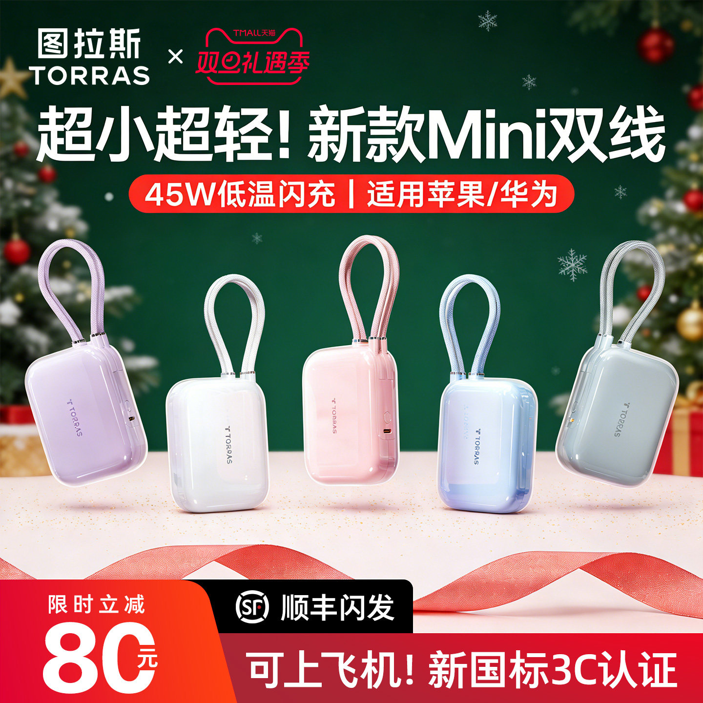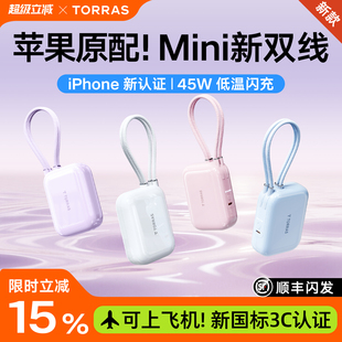 图拉斯充电宝3c认证可上飞机20000毫安快充大容量2025新款 国标识自带双线适用苹果17移动电源小巧便携华为45W