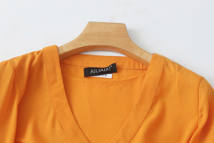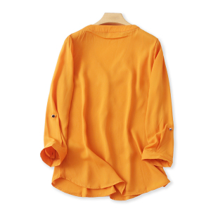 新款 宽松休闲女套头打底衫 小衫 V领九分袖 夏季 上衣M 雪纺衬衫