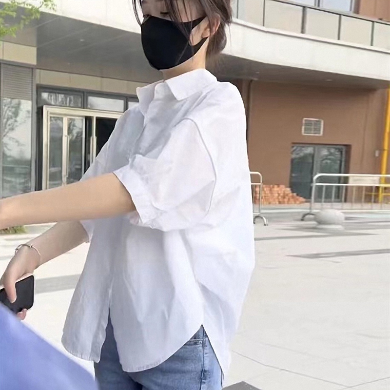 褶皱衬衣减龄宽松镂空设计感衬衫 夏季 发休闲拼接短袖 批新款 潮 女装