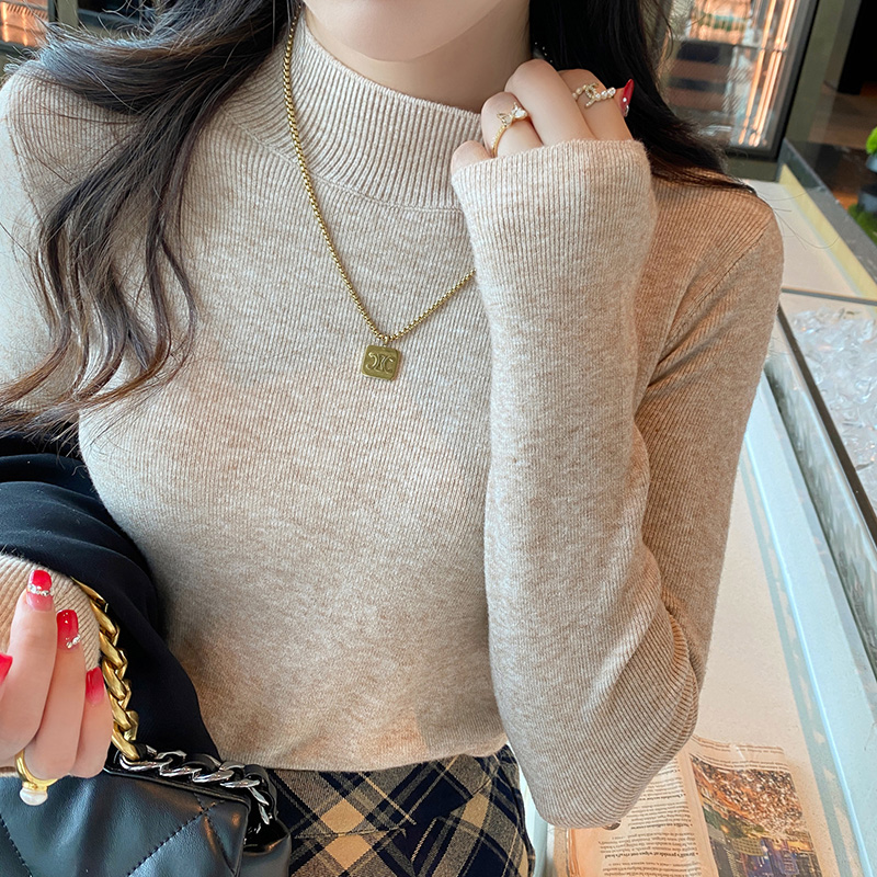 上衣 秋冬毛衣高级感修身 灰色羊绒半高领针织打底衫 女内搭2025新款