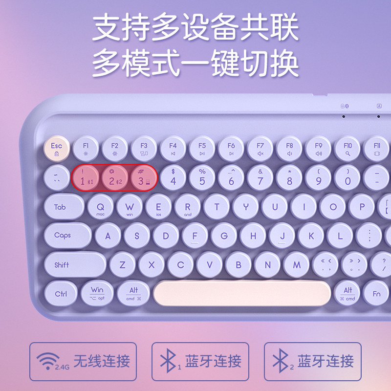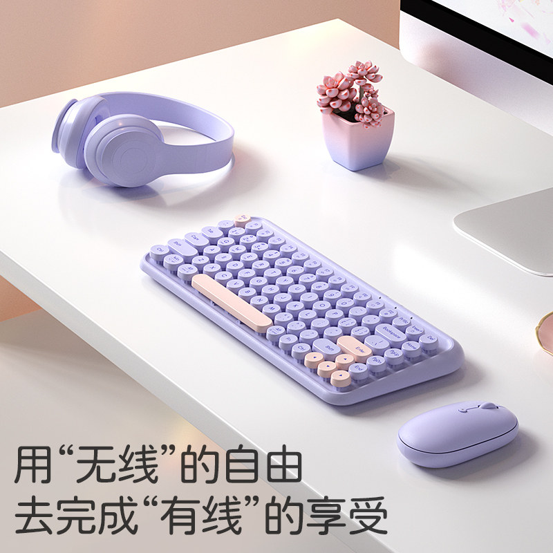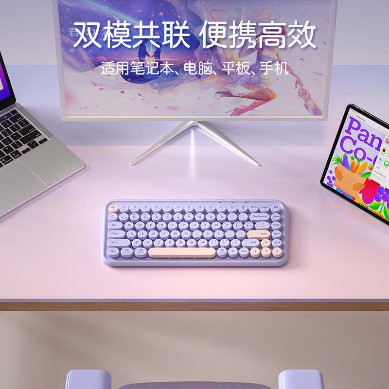 BOW朋克三模无线蓝牙键盘鼠标套装 外接笔记本USB电脑女生办公键鼠
