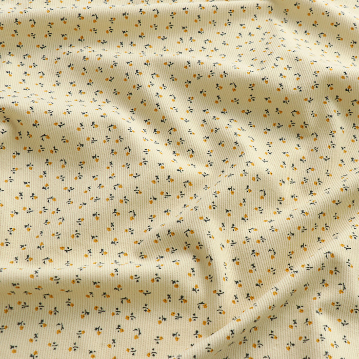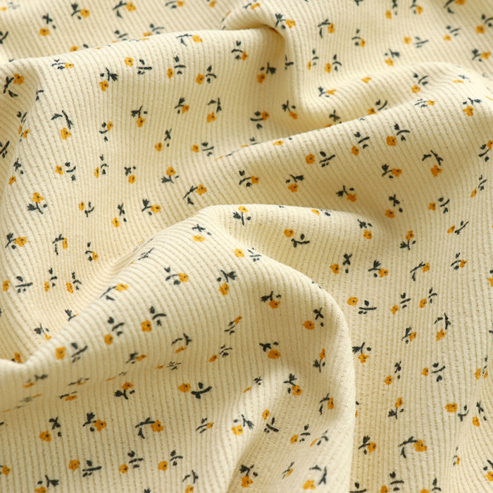 棉布印花杏色灯芯绒面料女装 面料无弹力 女童棉袄马甲连衣裙服装
