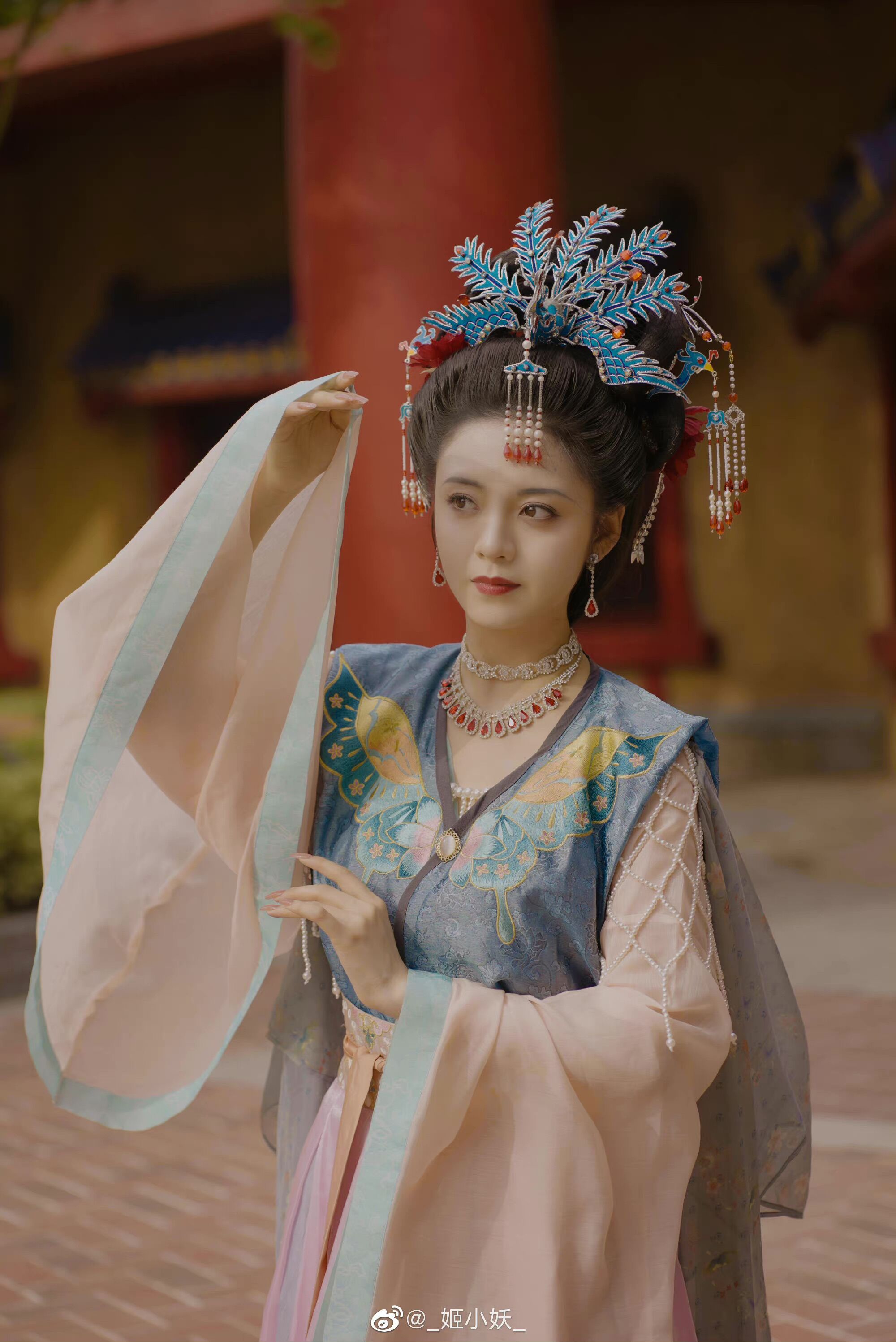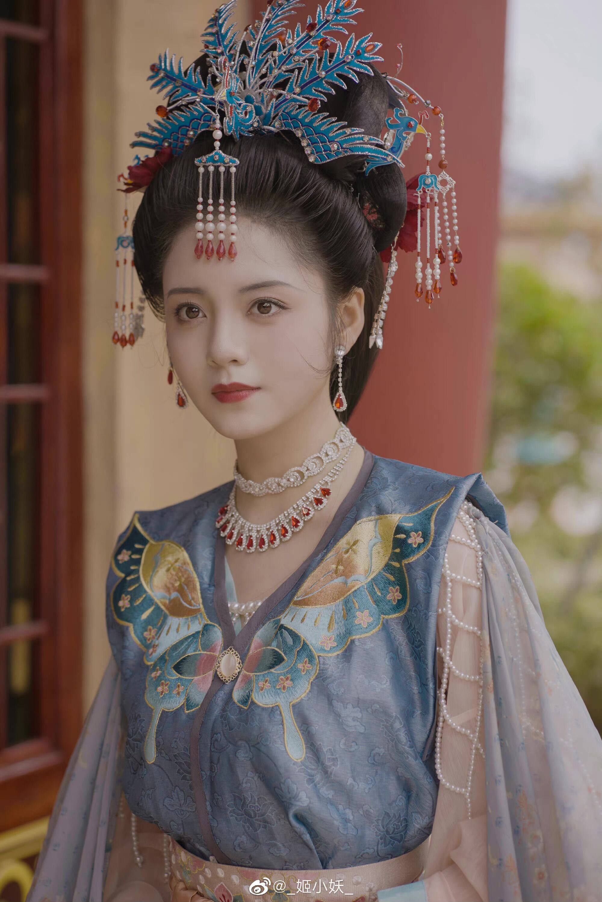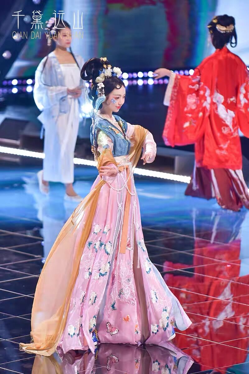 百蝶仙子唐褙子袒领女儿国王四月同款 千黛远山 汉服刺 汉锦记