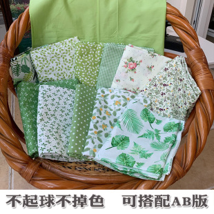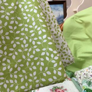 1.6米门幅纯棉布料被套面料全棉绿色田园小清新碎花朵斜纹格子布