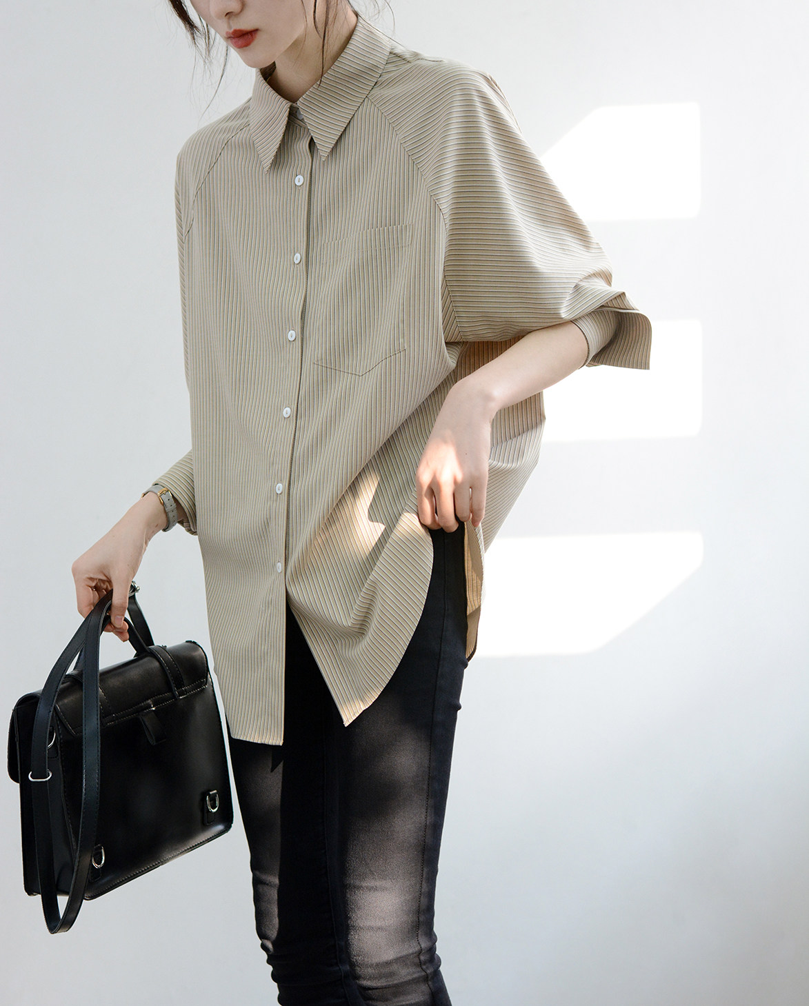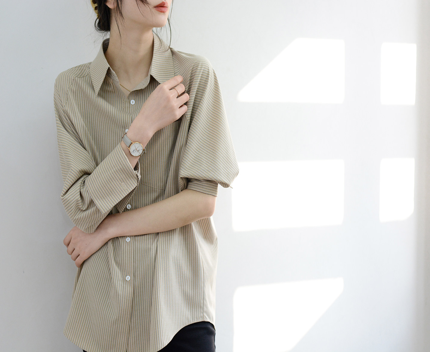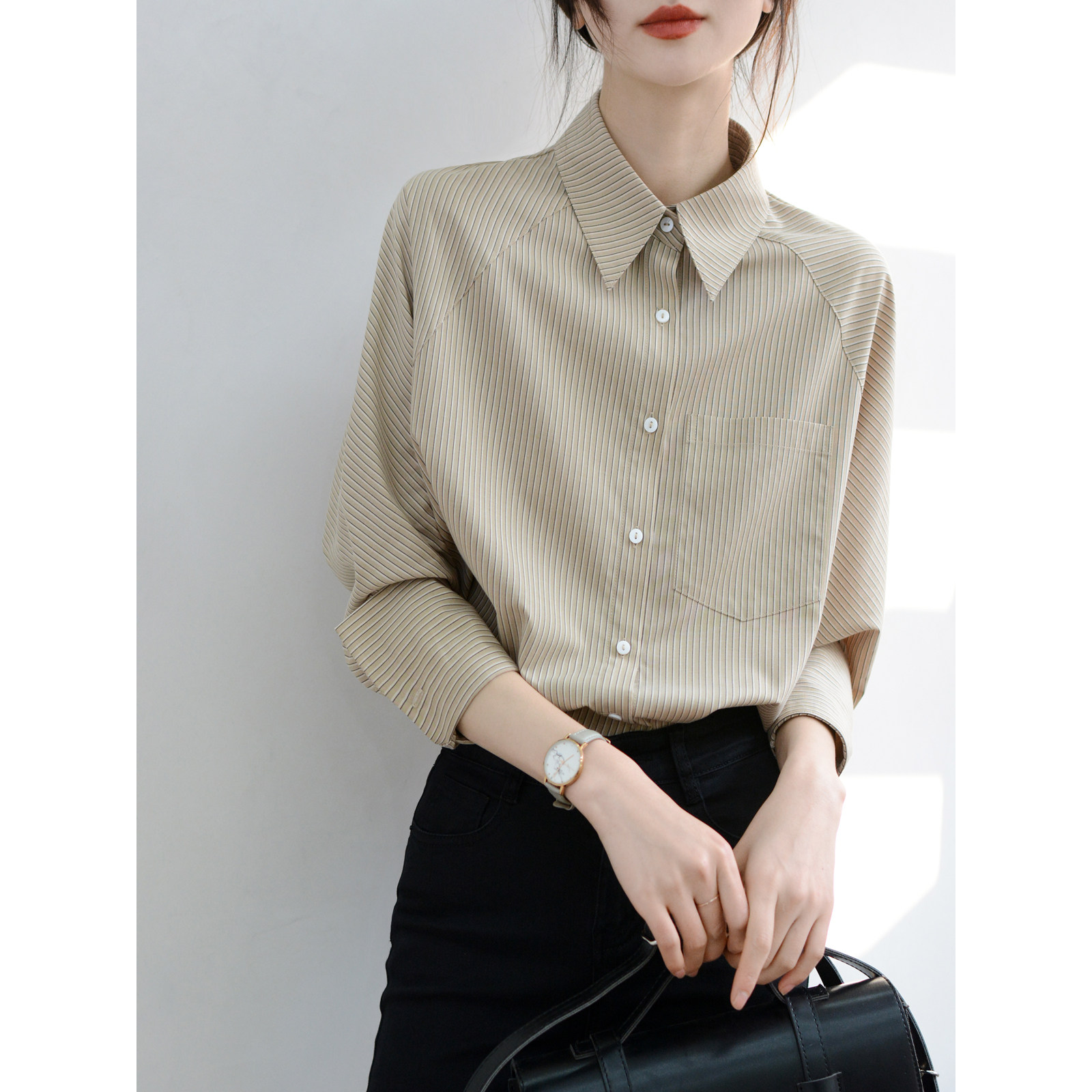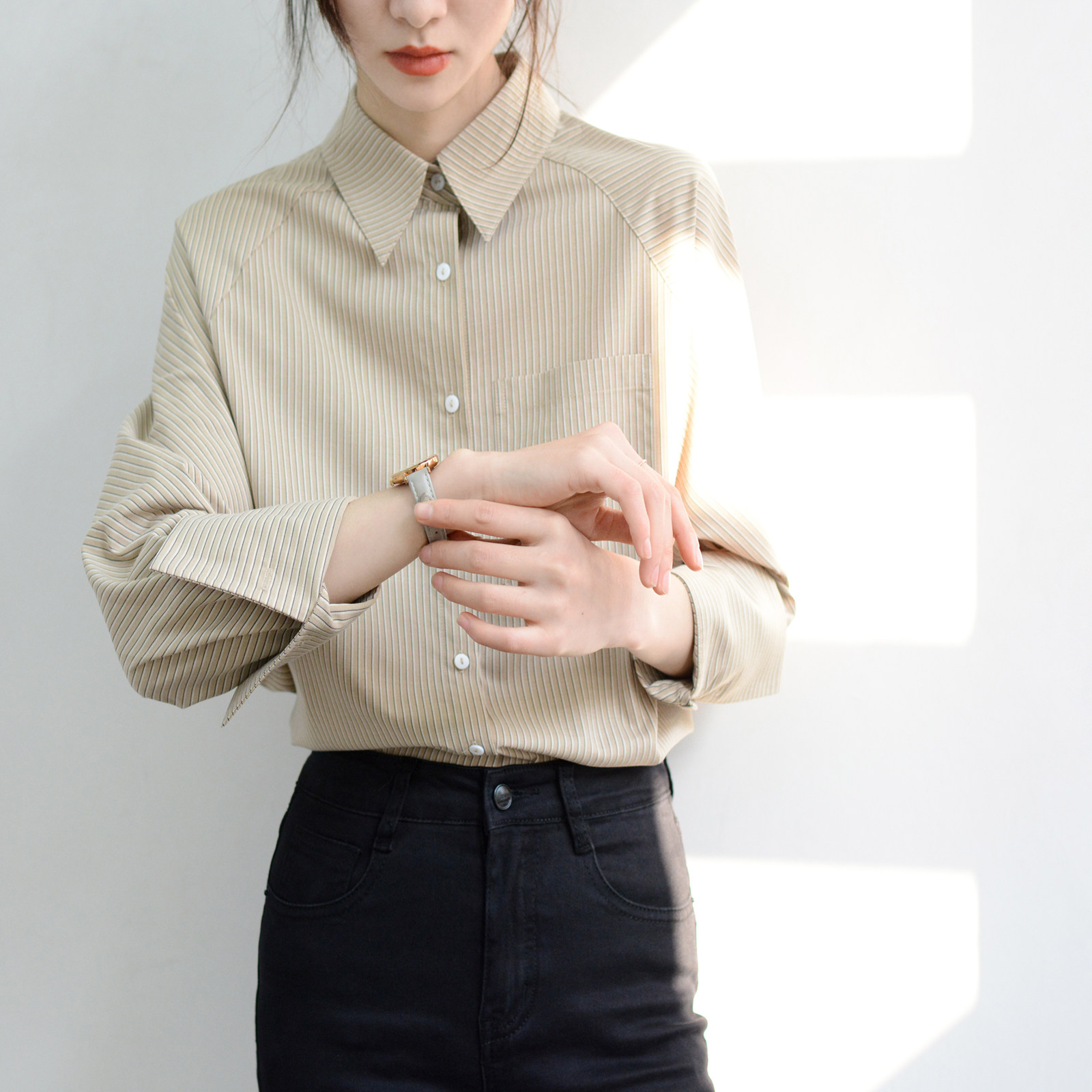 女士中性长袖 条纹宽松慵懒衬衫 衬衣nice上衣洋气 喜爱甭犹豫 TRR