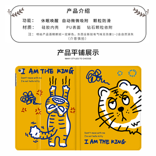 ipad适用air4 19新款 2旋转保护套10.2 5苹果123壳6 日韩可爱虎2021 9.7寸平板2018带笔槽pro11三折mini4