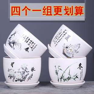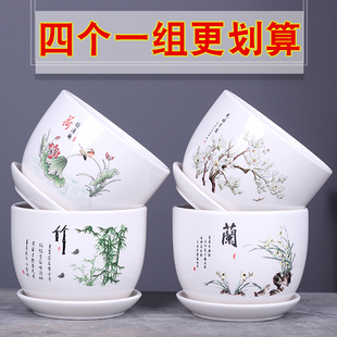 简约花盆陶瓷特价 家用绿萝吊兰多肉小花盆 清仓大号中号带托盘个性