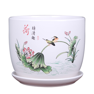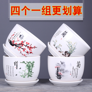 中国风花盆陶瓷带托盘 绿植创意室内阳台多肉植物盆栽 特大号个性
