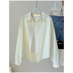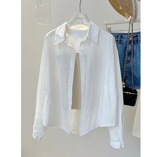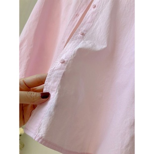 宽松纽扣设计长袖 百搭上衣纯棉衬衫 韩版 新款 防晒衬衣外套 女夏装