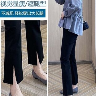 休闲裤 开叉微弹显瘦微喇裤 微胖裤 子女裤 潮 女胖妹妹春装 九分裤 时尚