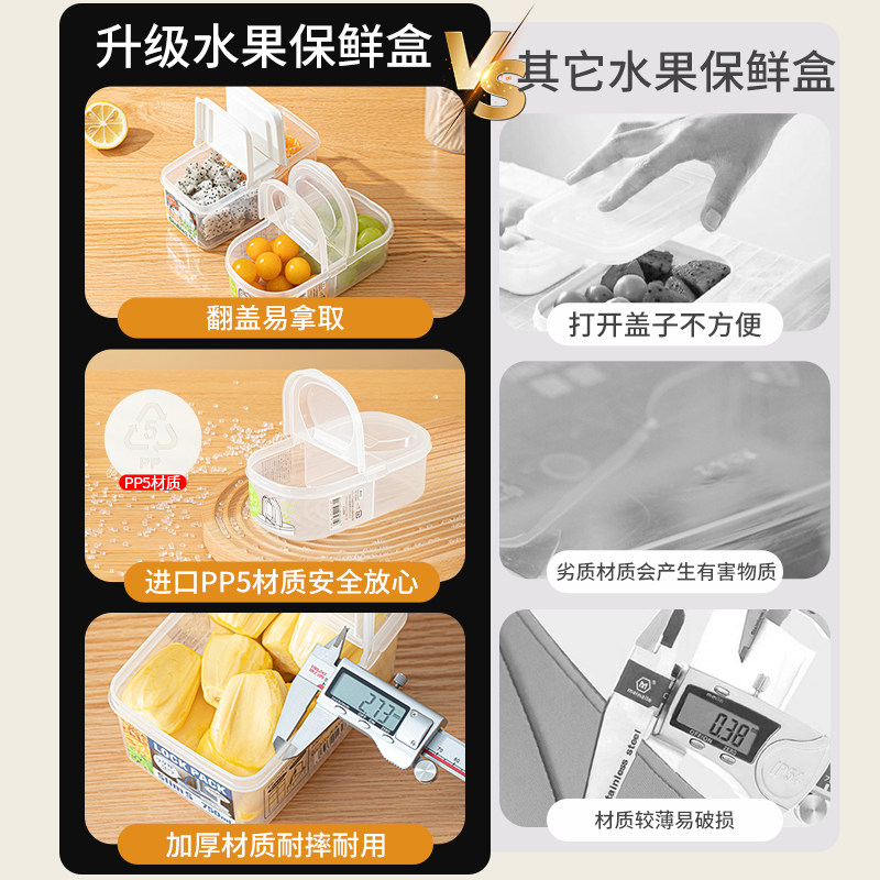 冰箱收纳盒食物水果蔬菜分装 保鲜盒透明长方形整理盒展示置物盒子