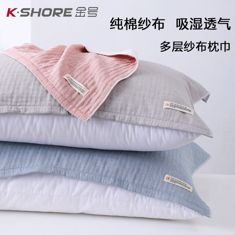 金号枕巾一对装 成人学生情侣枕头巾 高档多层纯棉纱布吸汗透气四季