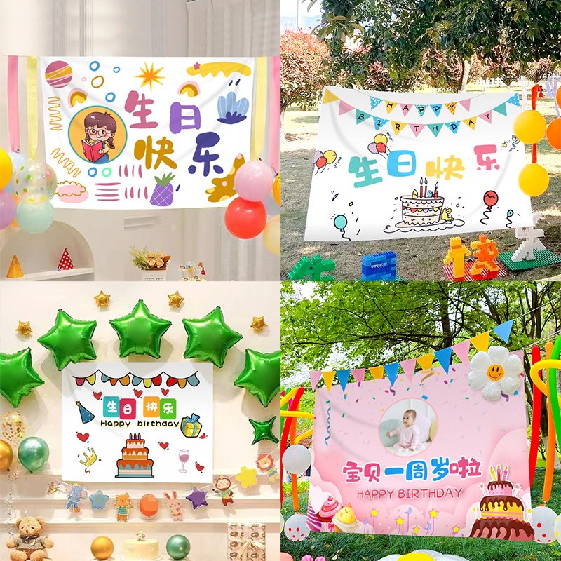 生日快乐背景布儿童宝宝周岁生日布置场景装 饰墙布可爱氛围感挂布