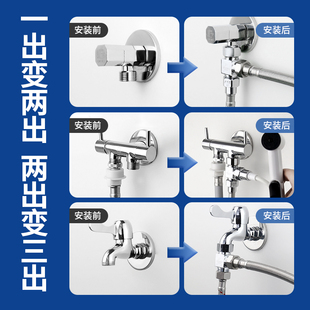 不锈钢三通角阀一进二出水龙头双开关一分二双用洗衣机接头三角阀