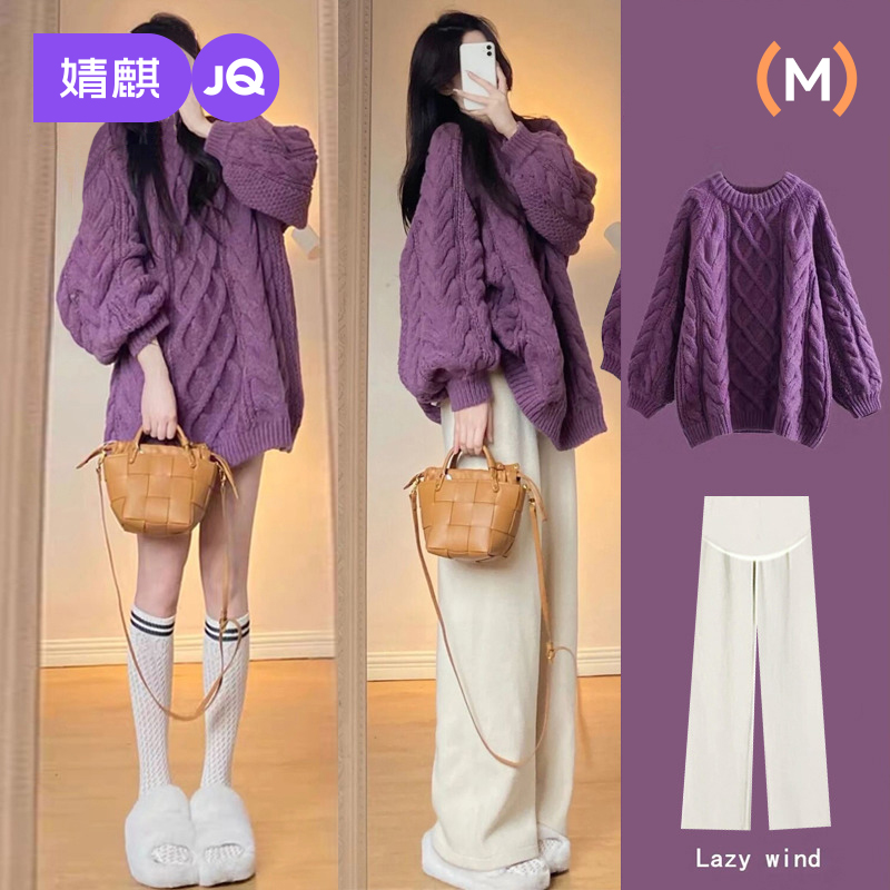 秋冬款 时尚 2025新款 两件套装 春秋 上衣毛衣宽松加绒阔腿裤 孕妇套装