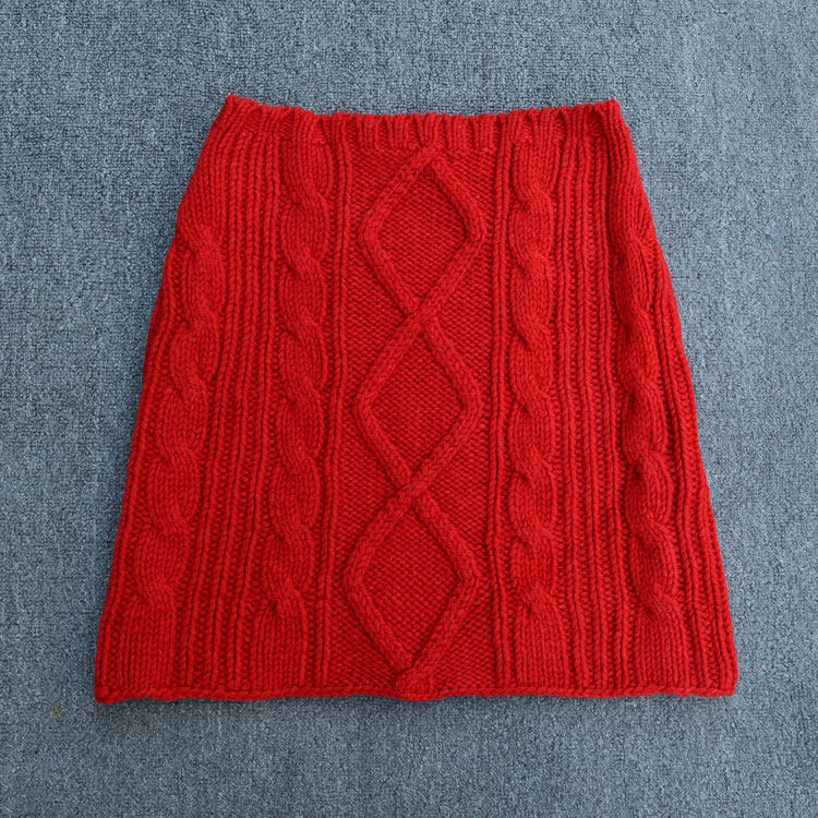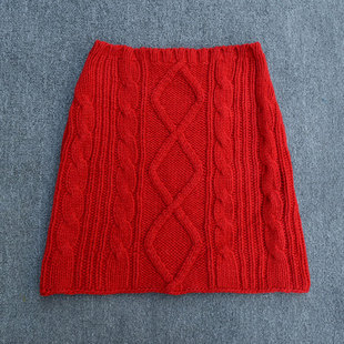 时髦叠穿短款 屁帘女秋冬季 针织半身裙 胖mm立体钩编绑带一片式 大码