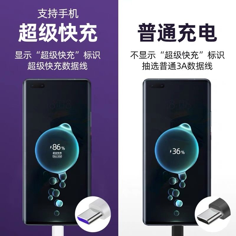 100W正品 type p40p30p70Nova8荣耀v60充电线器原手机插头6A超级快充闪装 c数据线BS适用66W华为mate60pro