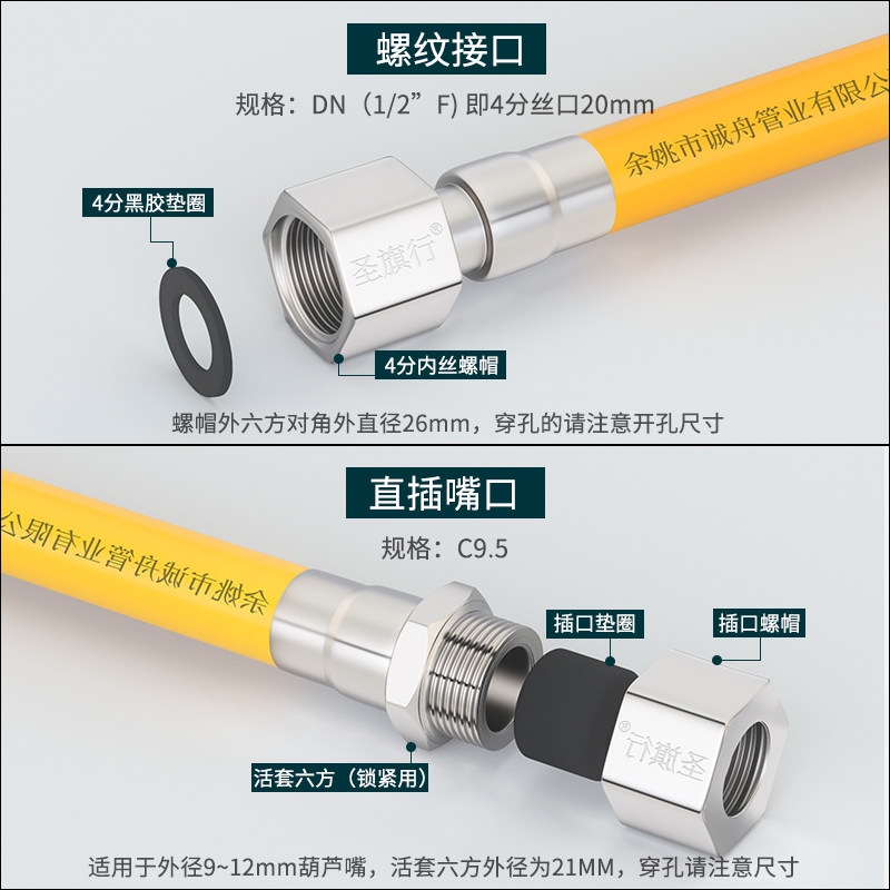 不锈钢波纹管金属燃气管天然气管道防爆软管热水器燃气灶配件家用