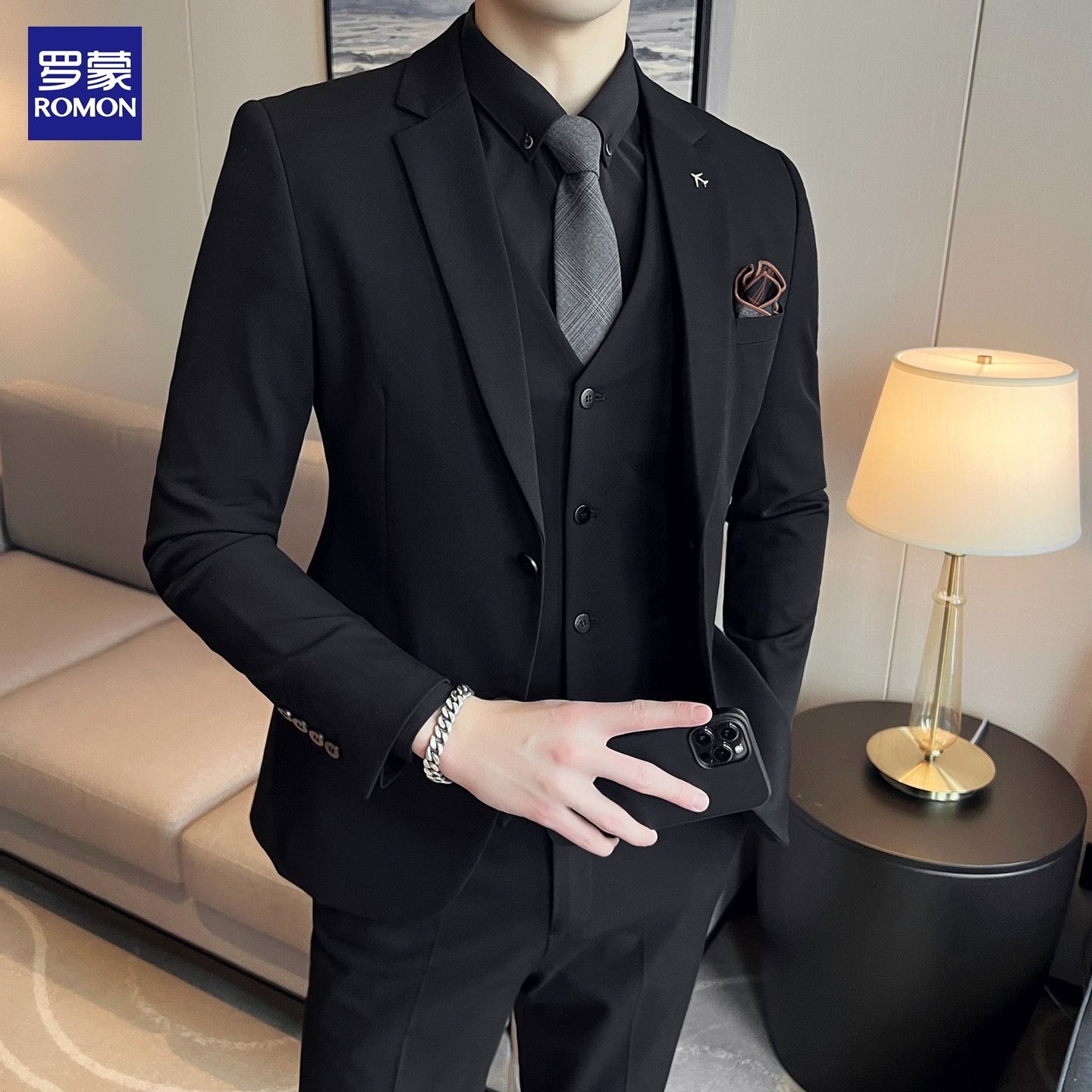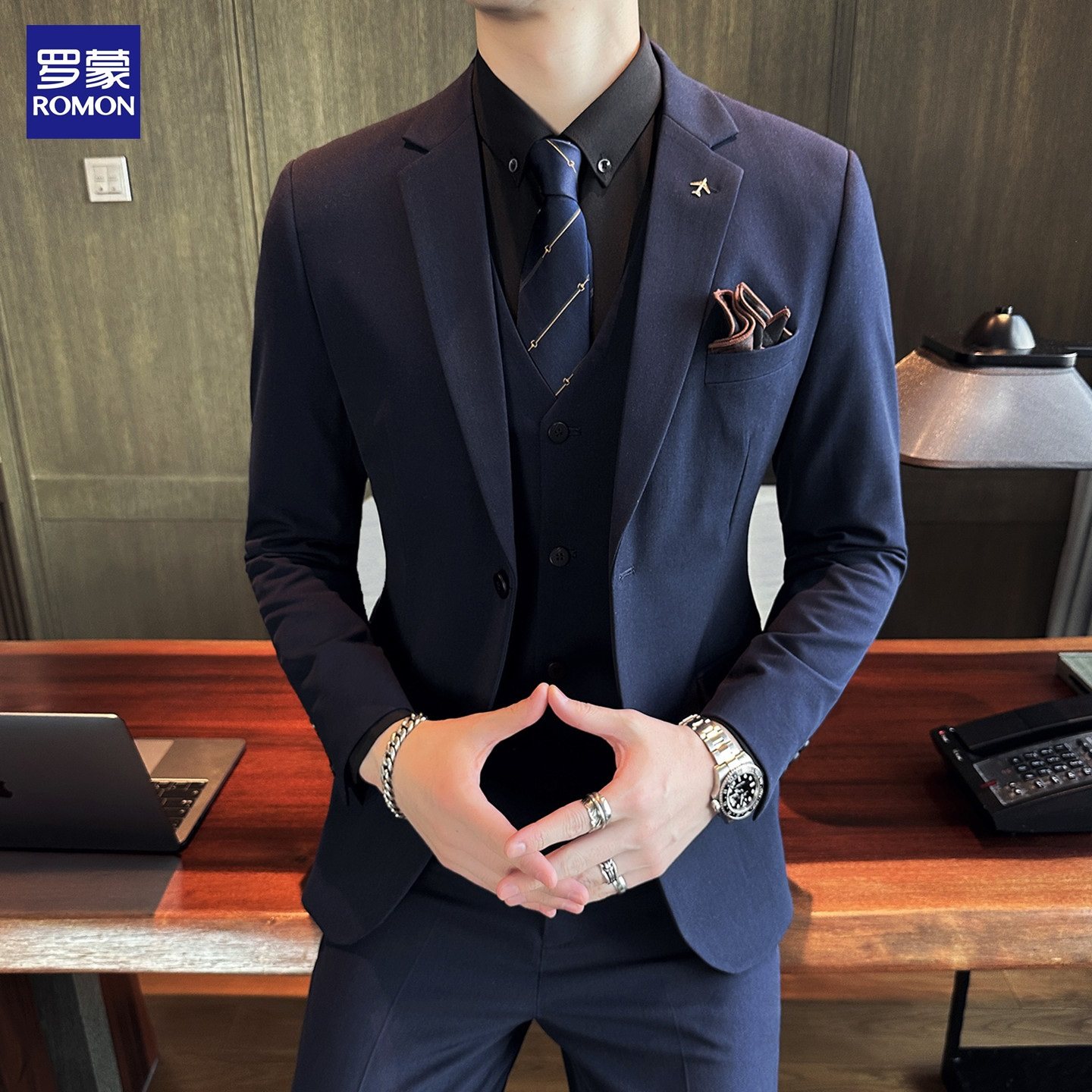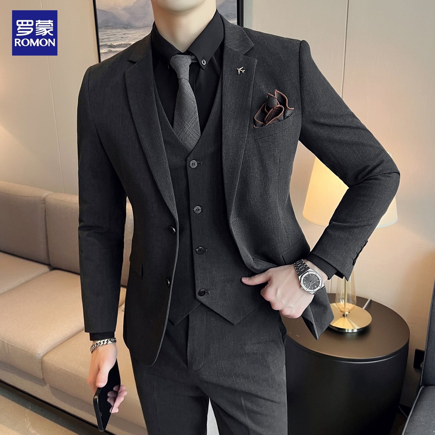 西装 罗蒙西服套装 修身 商务休闲正装 新郎结婚礼服上班纯色外套 男士