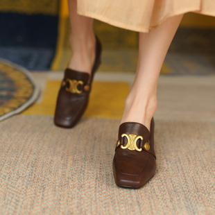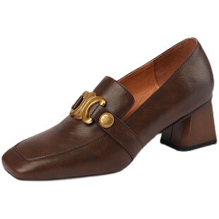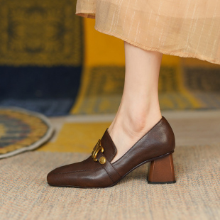单鞋 复古软皮高跟鞋 乐福鞋 真皮粗跟方头英伦小皮鞋 女2025春秋新款