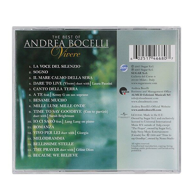 欧版 安德烈波切利专辑生命奇迹 Vivere Bocelli CD唱片 Andrea