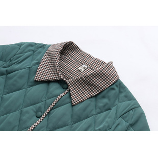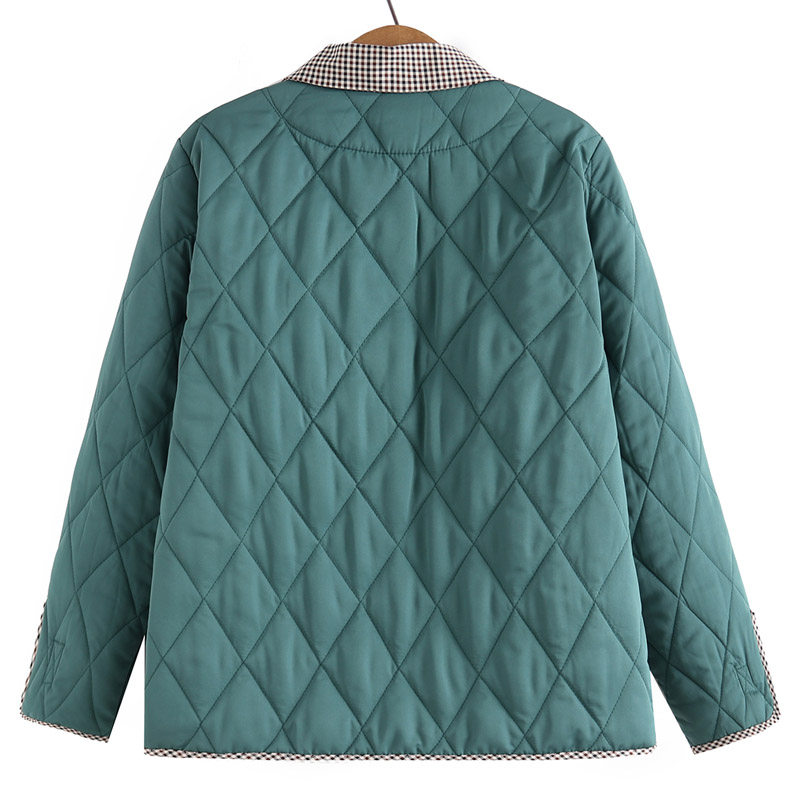 加肥加大码 中老年轻薄羽绒棉服洋气胖妈妈格子翻领设计感棉衣外套