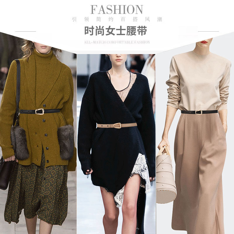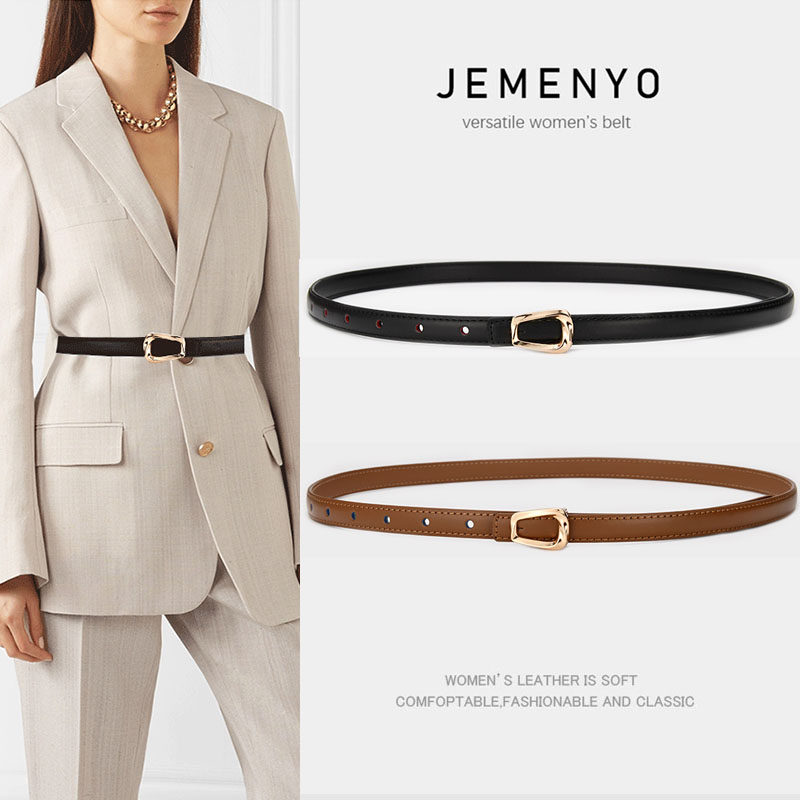 百搭小皮带配饰ins潮裤 真皮细腰带女装 收腰时尚 裙子衬衫 带 饰西装
