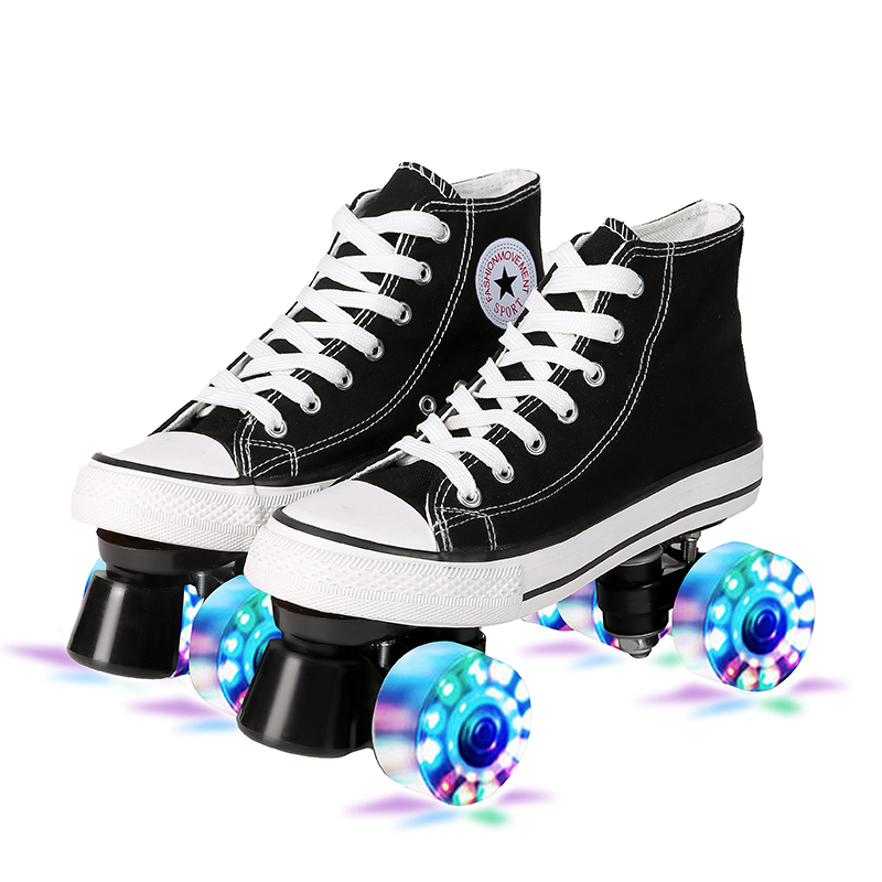 帆布夏季 轮滑冰鞋 透气双排溜冰鞋 成年男女旱冰鞋 闪光 四轮滑鞋 新款