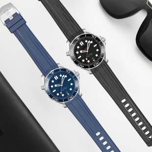 适用omega欧米茄表带新海马300氟橡胶手表链海洋宇宙超霸男硅胶20