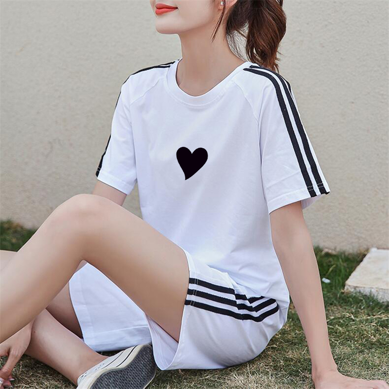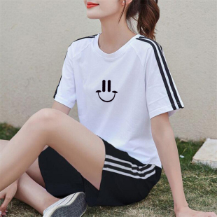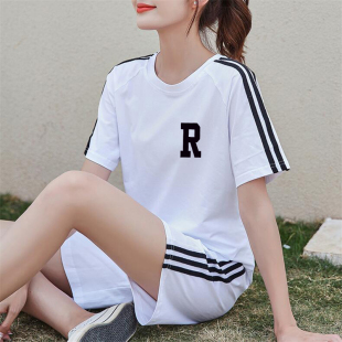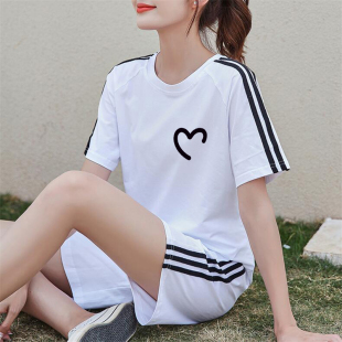 女纯棉短袖 跑步运动服套装 五分短裤 大码 潮 夏季 休闲健身两件装 新款