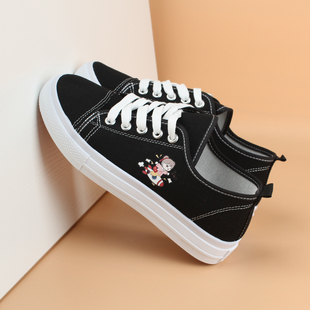 厚底低帮百搭休闲原宿风老北京布鞋 女学生黑色防滑板鞋 帆布鞋 新款