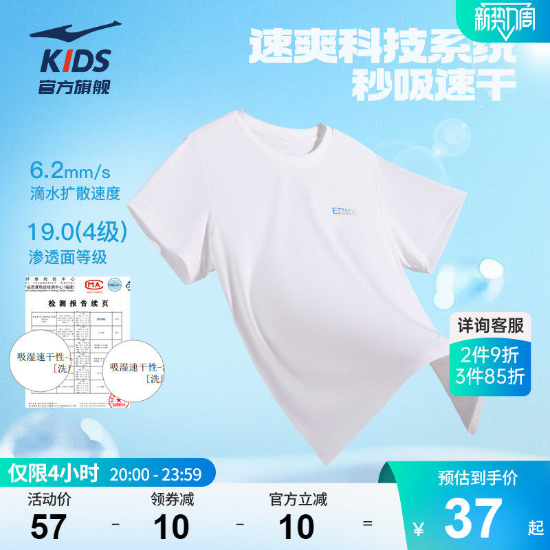 儿童运动速干衣女童防晒中大童夏装 T恤夏季 男童短袖 鸿星尔克童装
