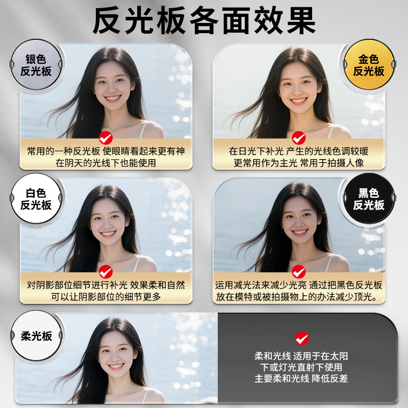 锐富图摄影反光板便携支架迷你小型折叠圆形五合一拍照道具遮光补光自拍室内外拍直播人像灯光柔光打光板架