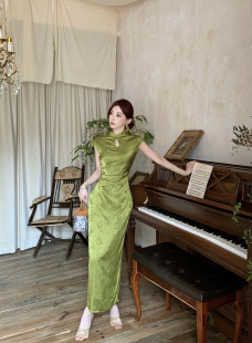 绿色提花显瘦显白旗袍国风长款 Mimo 新中式 盛夏 连衣裙女夏
