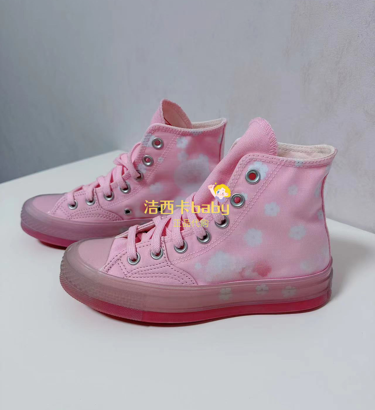 1970樱花粉白色水晶透明底高帮166752C 破盒瑕疵特价 正品 匡威
