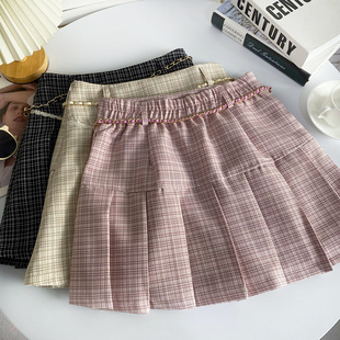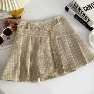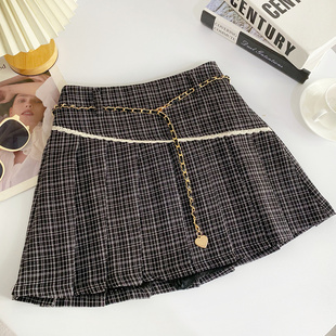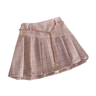 甜美chic小香风格 高腰A字防走光半身裙配腰带 纹百褶短裙春夏新款