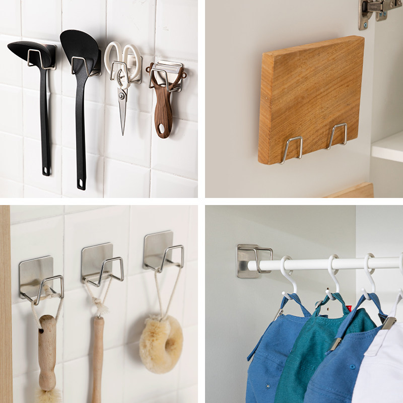 霜山不锈钢海绵置物架免打孔厨房钢丝球洗碗抹布沥水架收纳粘钩