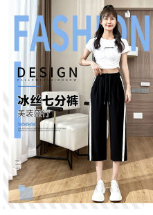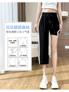 薄款 韩版 大码 显瘦遮肉直筒裤 潮 阔腿七分裤 宽松休闲运动长裤 女夏季
