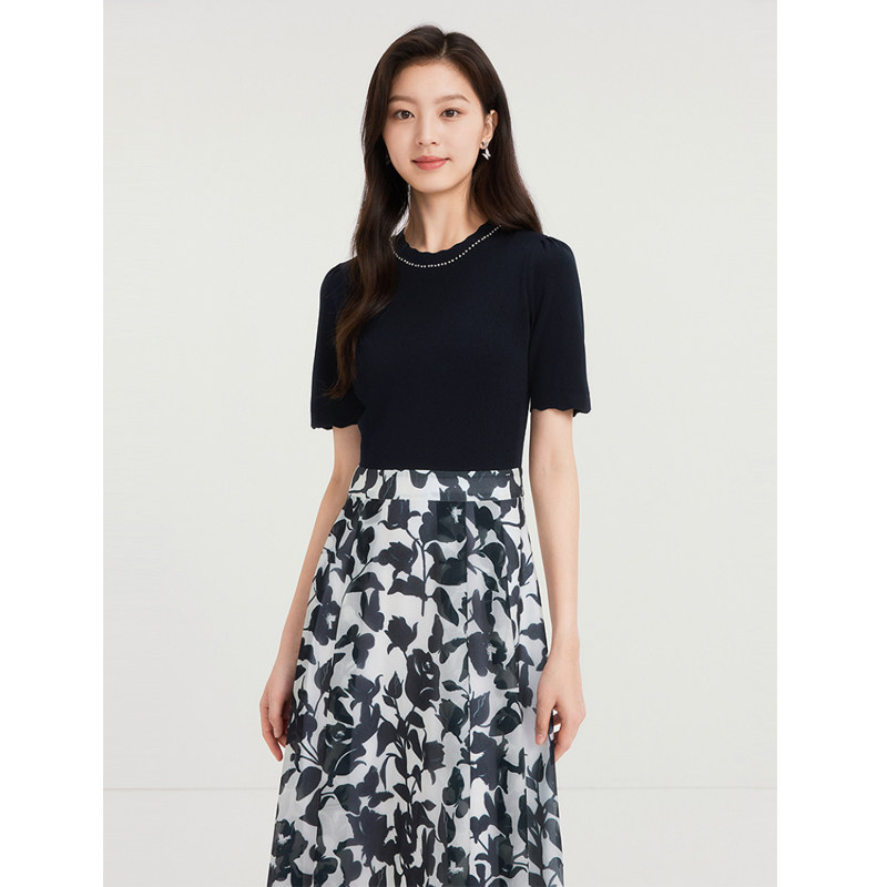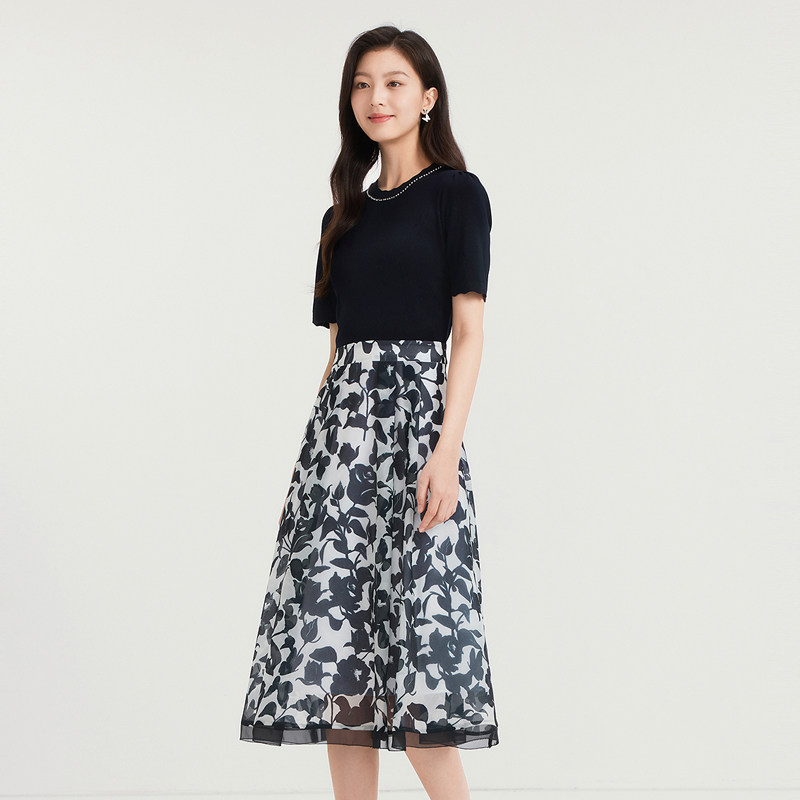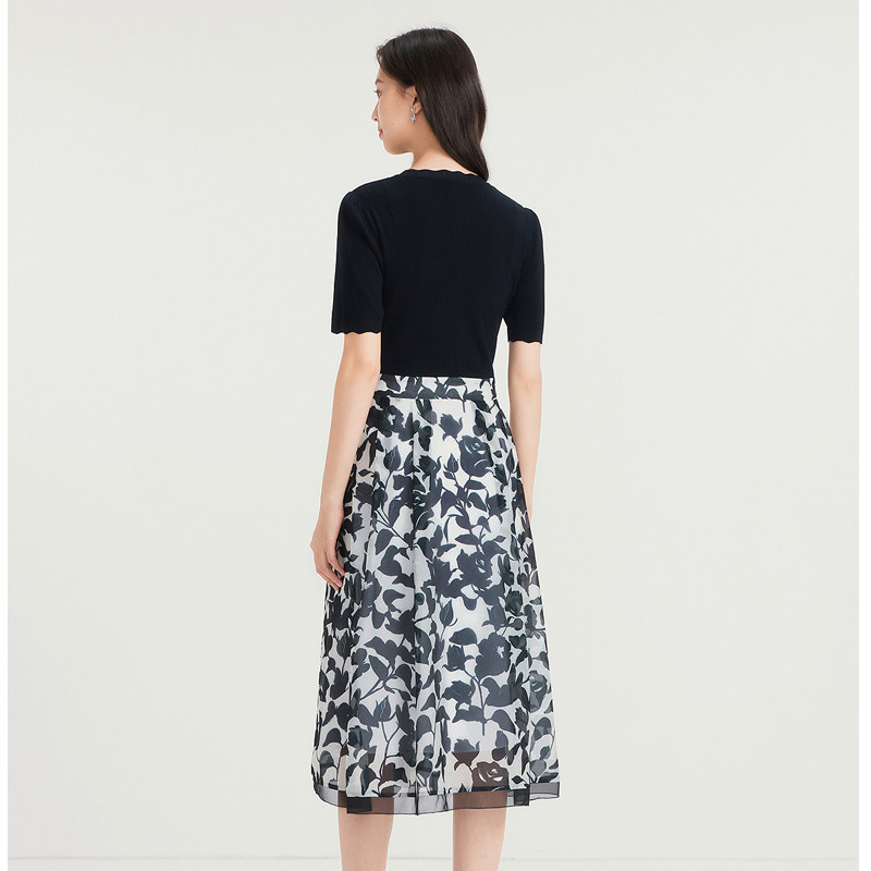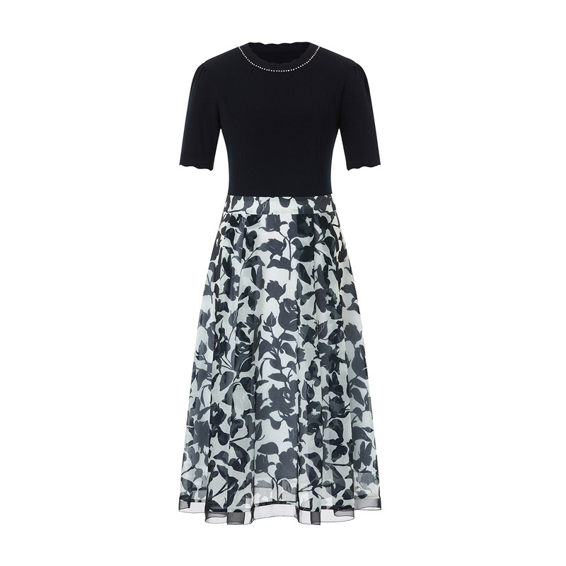 女装 新款 拼接显瘦印花针织连衣裙KF12324Q7 2025夏季 珂莱商场同款