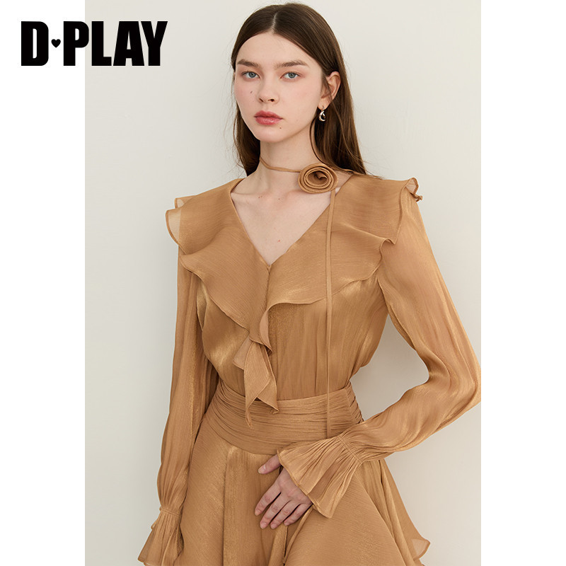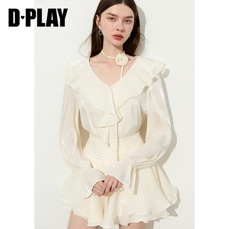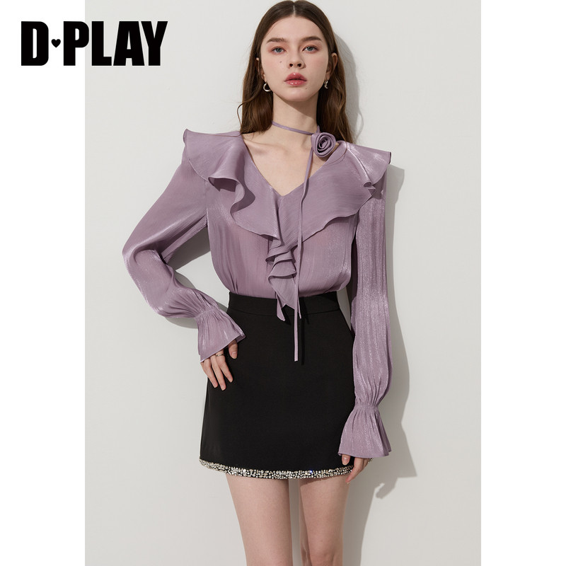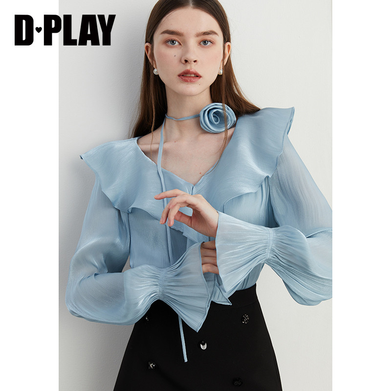 衬衫 DPLAY2026年春季 千金风荷叶边V领长袖 V领法式 上衣女 新款