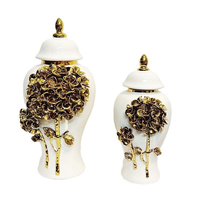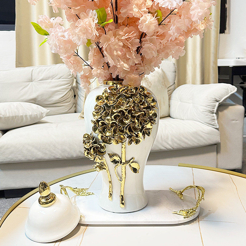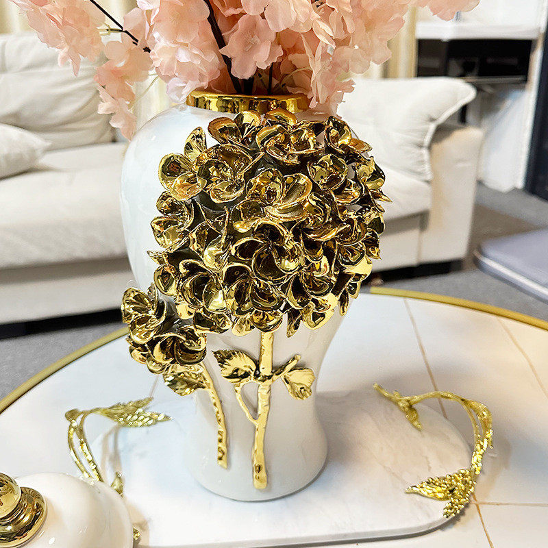 热销欧式 轻奢陶瓷手工客厅摆件将军瓶电镀金色插花花瓶样板房玄关
