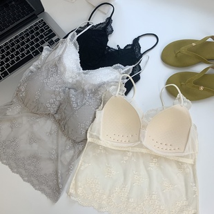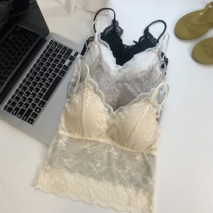 纯欲防走光内搭背心 外穿修身 甜辣v领蕾丝带胸垫小吊带女春季 夏装