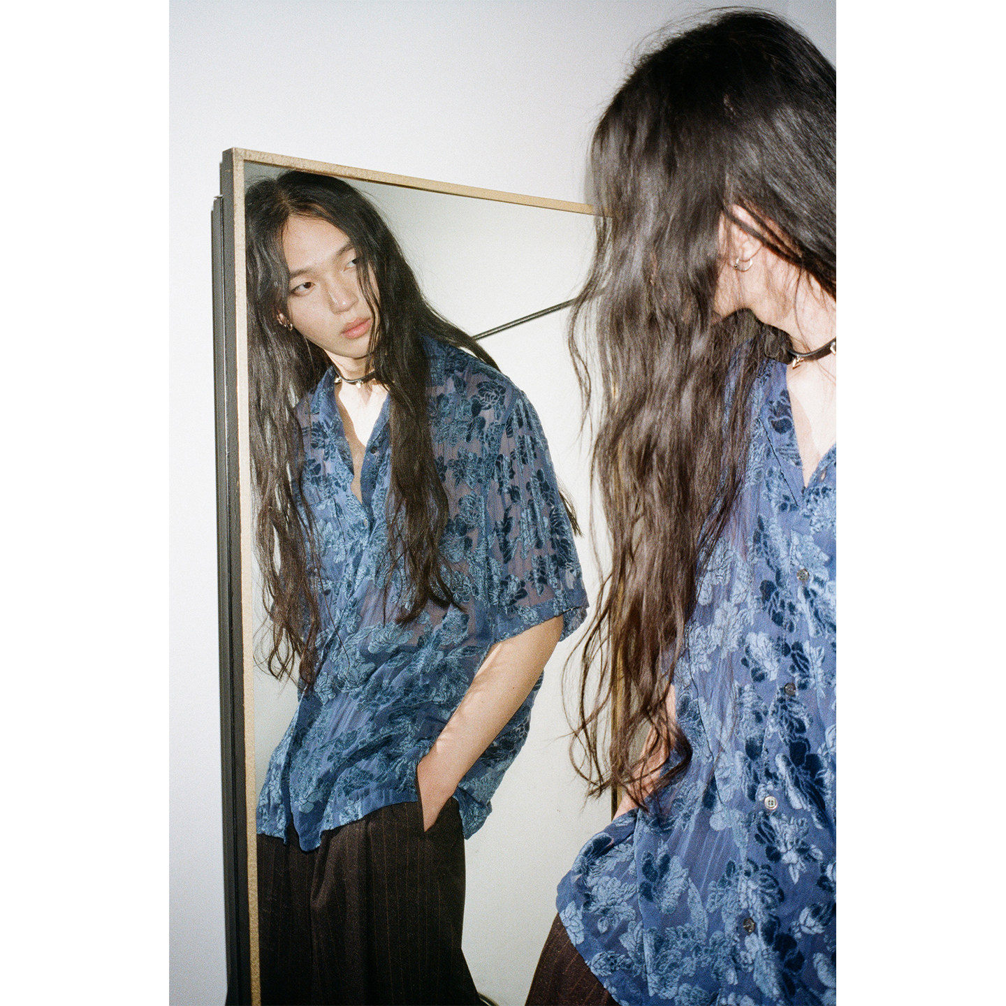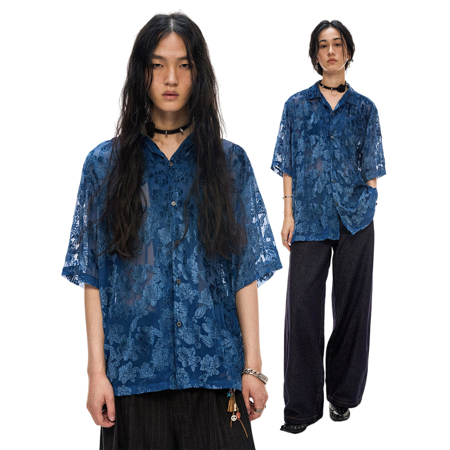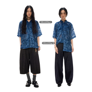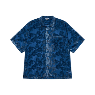 衬衫 物理少年「蓝调俱乐部」烂花锦绒开衩古巴领短袖 线下同款