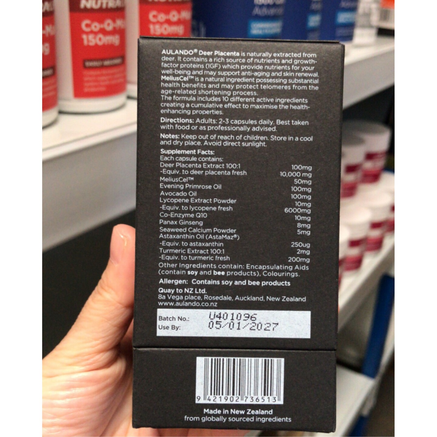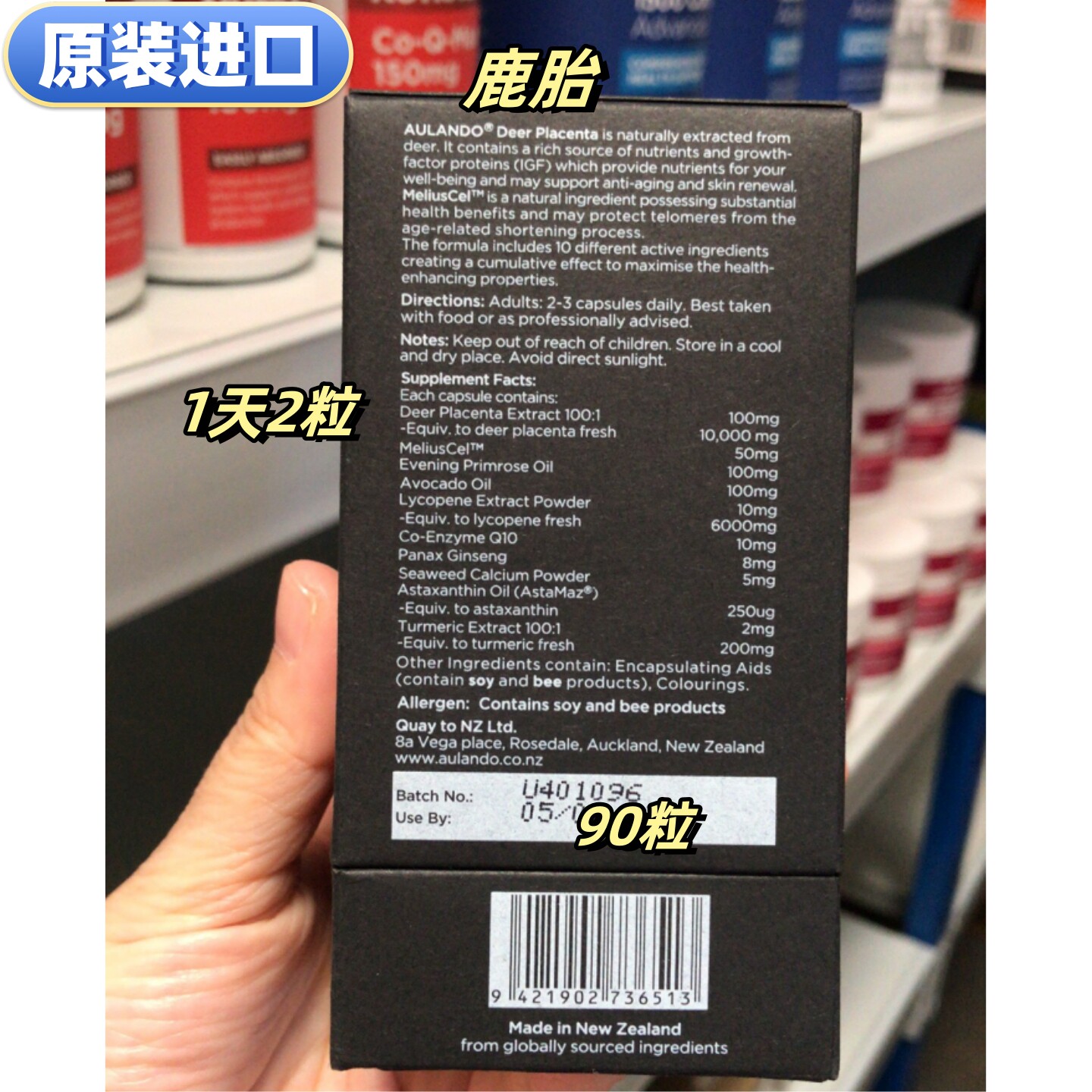 3粒 直邮每天2 原装 进口Aulando黑金鹿胎胶囊90粒冻干粉新西兰代购