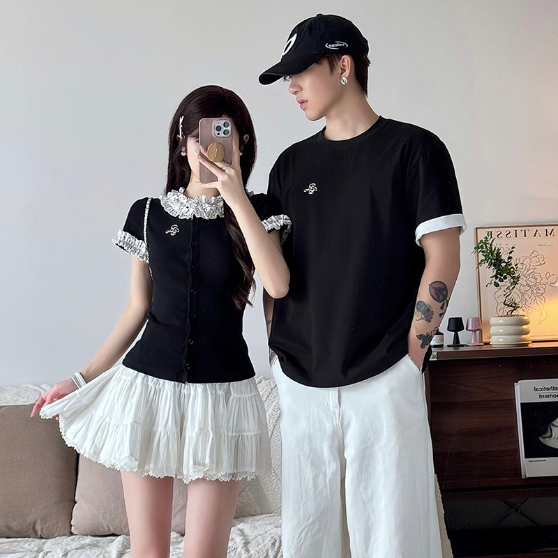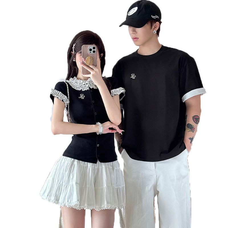 修身 2025新款 一衣一裙ins超火蕾丝花边短袖 情侣装 收腰两件套 夏季