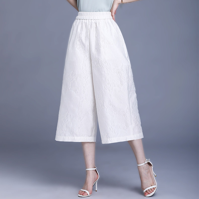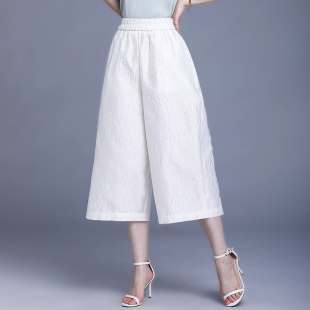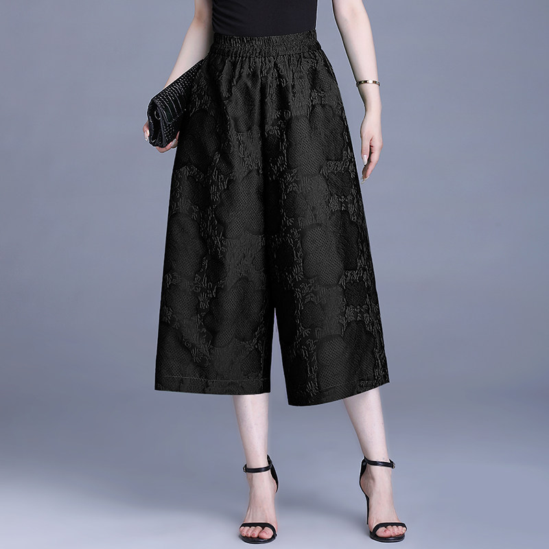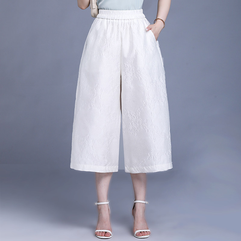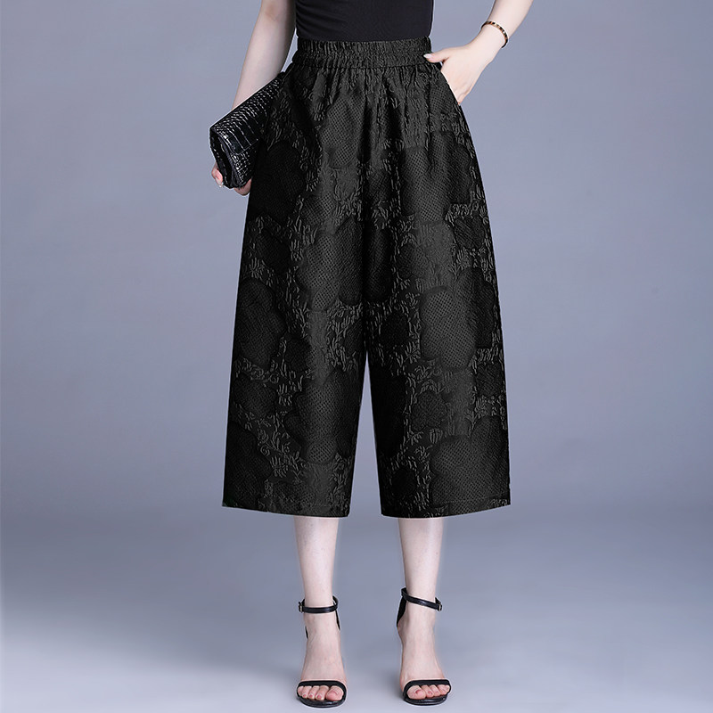 宽松遮肉显瘦阔腿裤 新中式 夏新款 提花直筒裤 小个子妈妈七分女士裤
