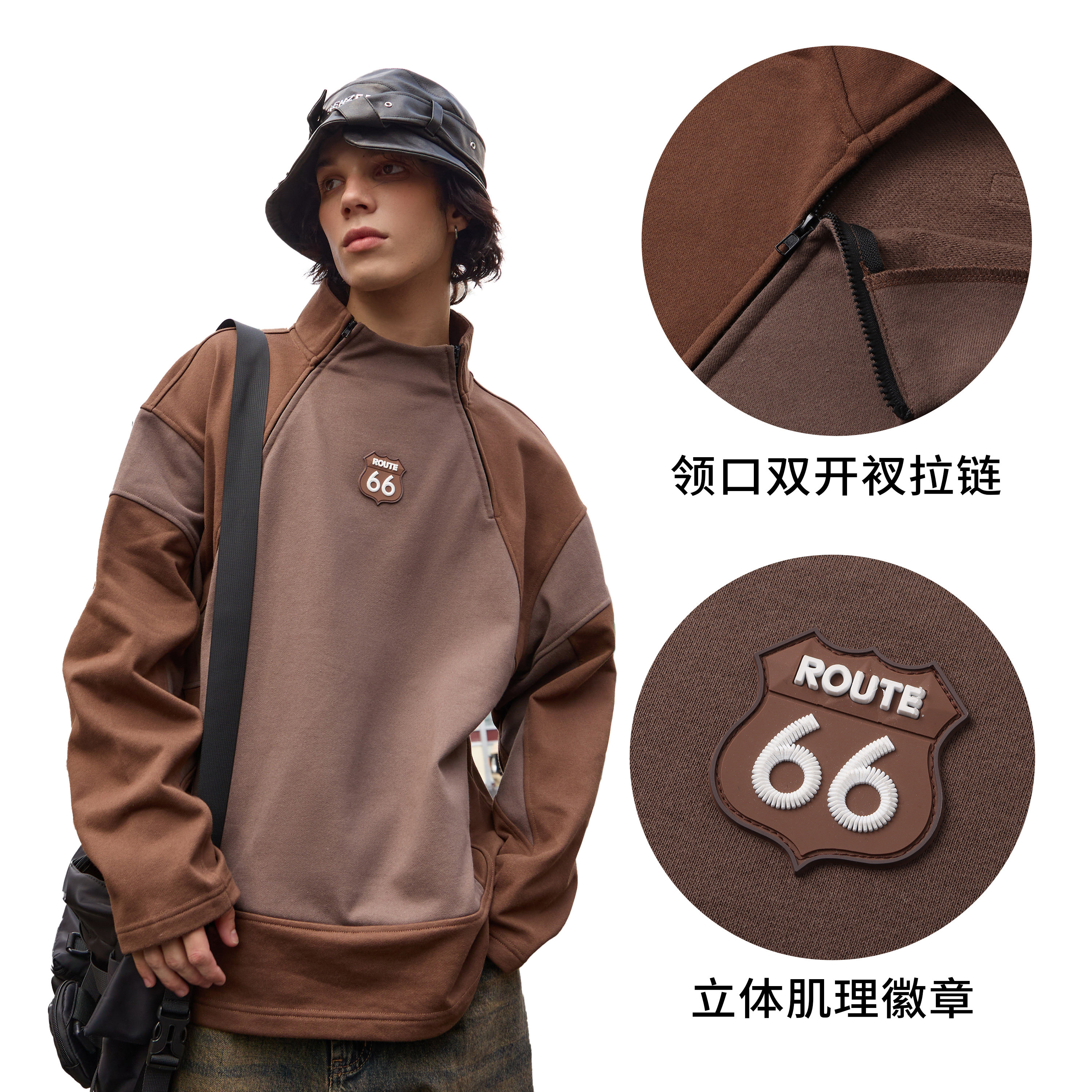 编织贴布刺绣LOGO卫衣宽松加绒连帽衫 INSstudios 国潮牌情侣美式